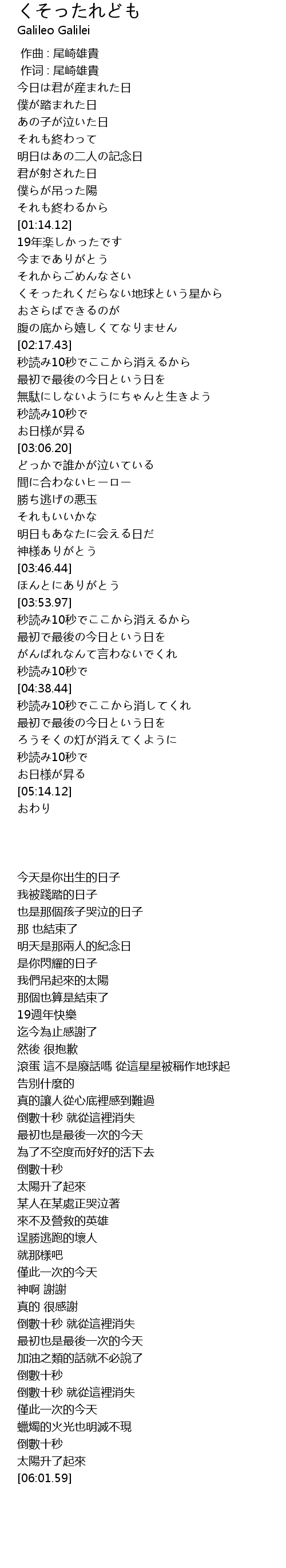 | [00:01.00] | 作词 : 尾崎雄貴 |