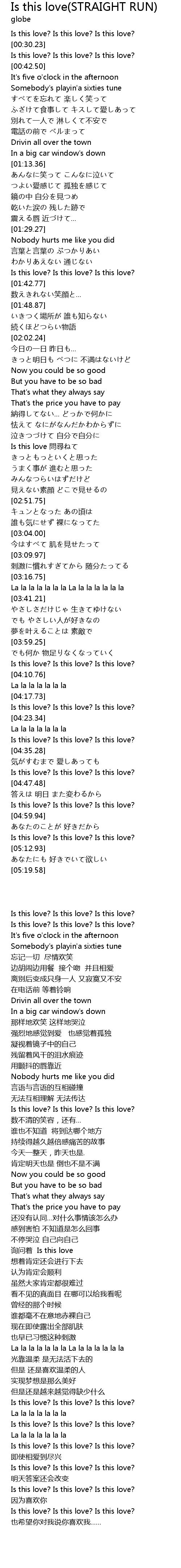 | [04:54.93] | Is this love? Is this love? Is this love? |