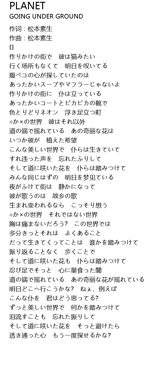 | そして道に咲いた花を 仆らは踏みつけて | |