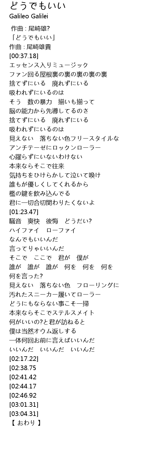| [02:14.78] | いいんだ いいんだ いいんだ |