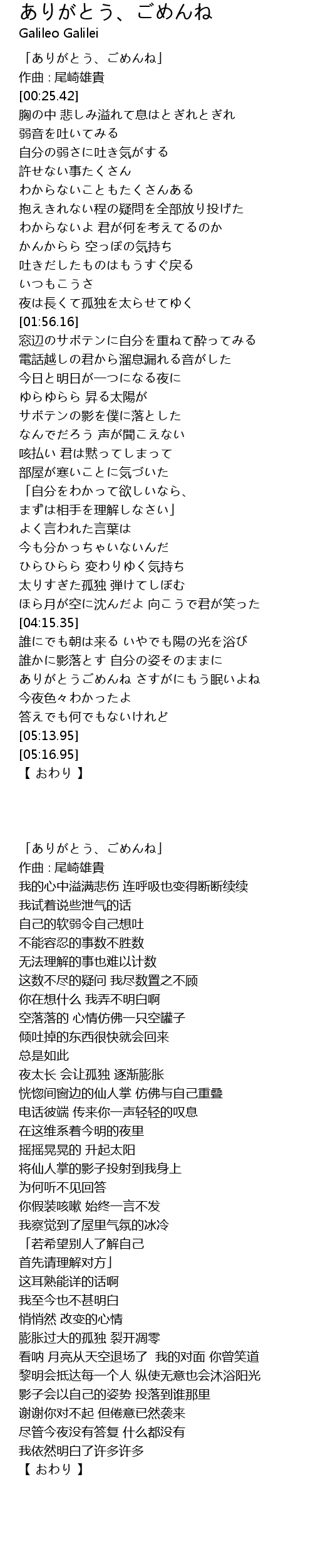 | [00:01.42] | 「ありがとう、ごめんね」 |
