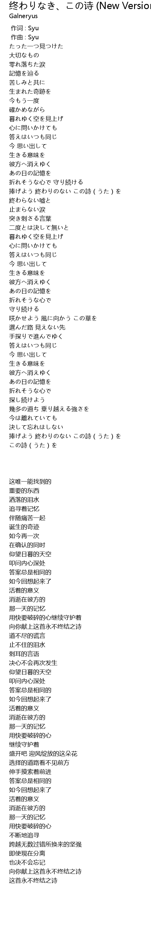 | [06:52.700] | 捧げよう 終わりのない この詩(うた)を |