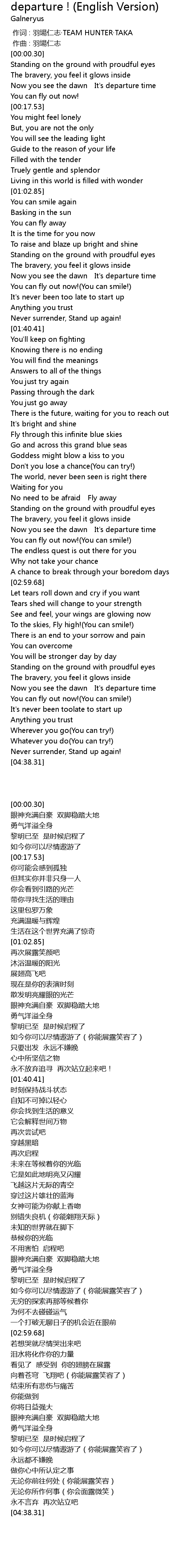 | [00:06.67] | Now you see the dawn It' s departure time |