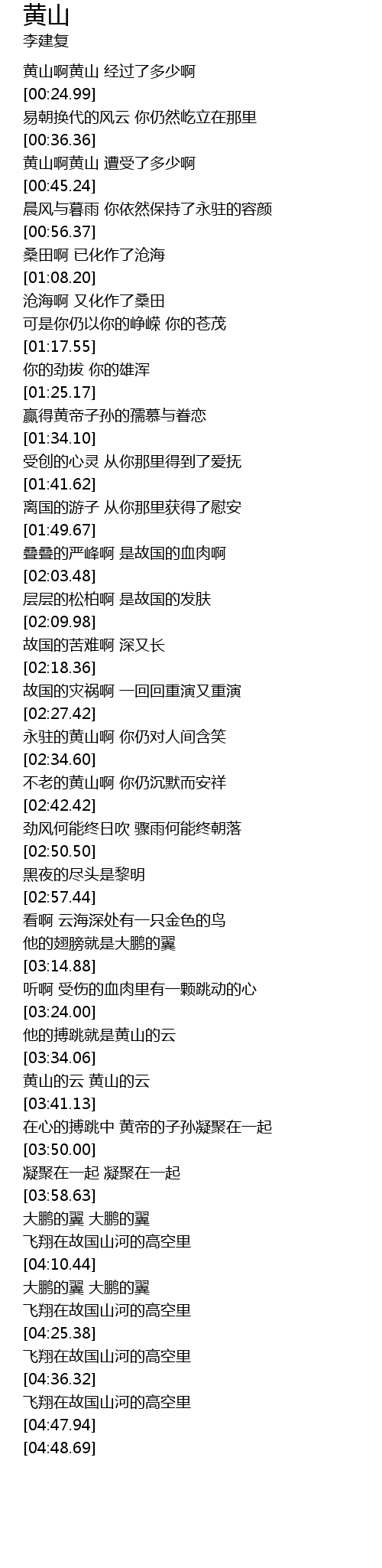 | [02:36.17] | 不老的黄山啊 你仍沉默而安祥 |