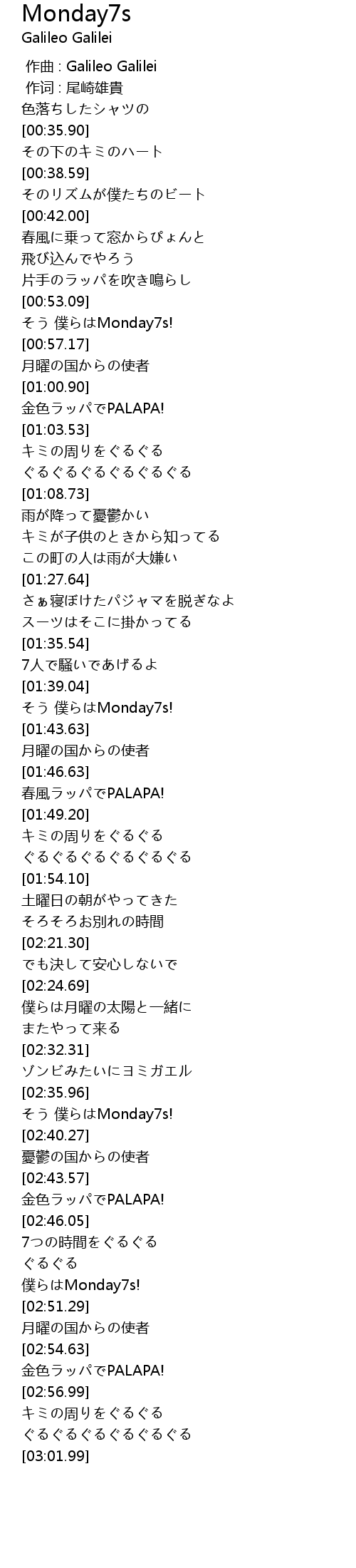 | [02:37.94] | そう 僕らはMonday7s! |