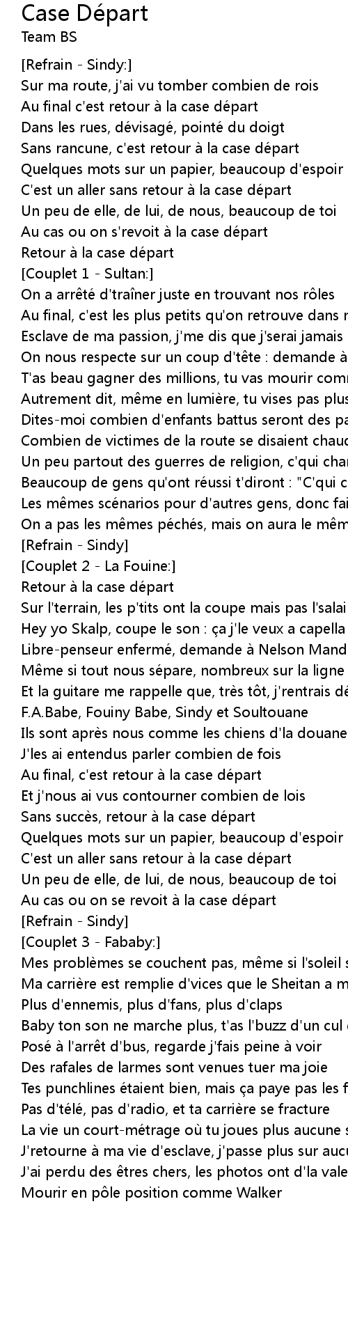 | Song | Case Départ |