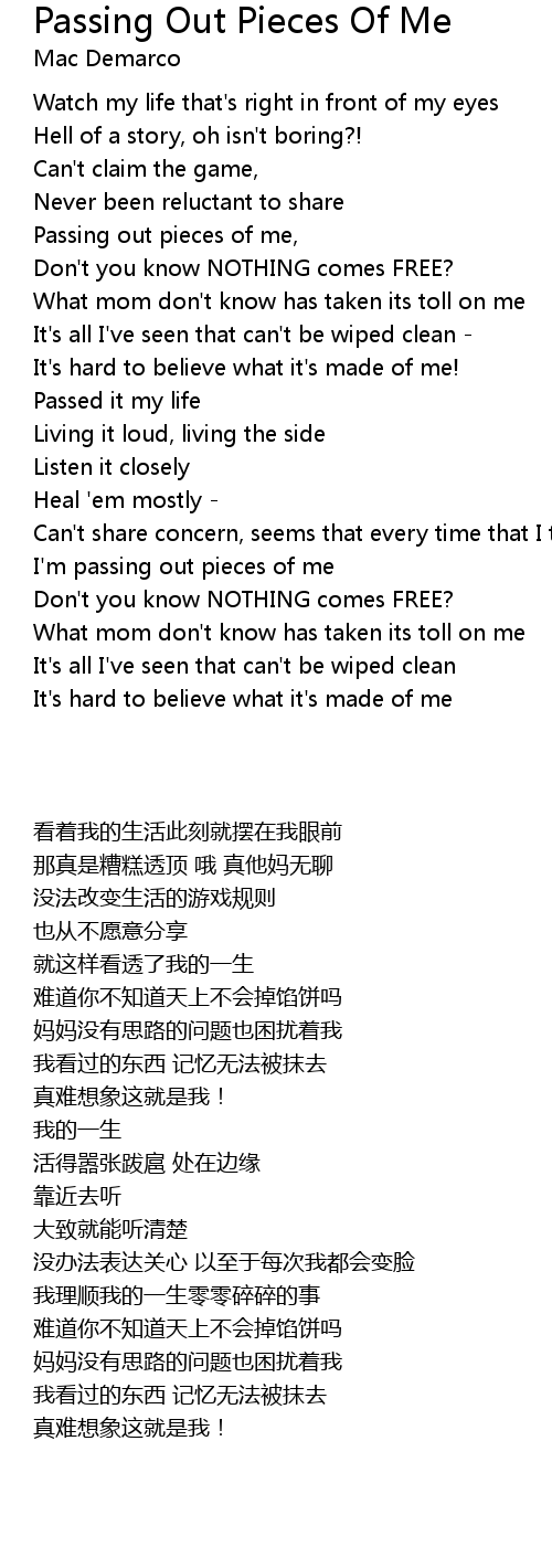 Passing out pieces of me, |
