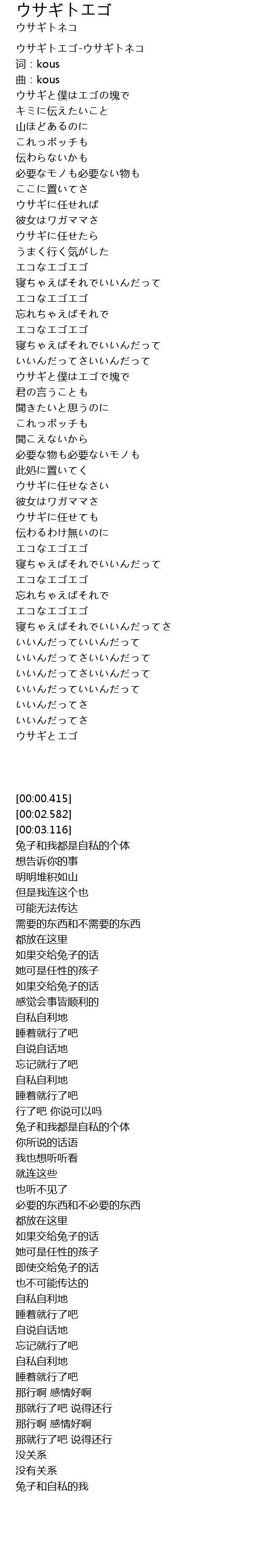 ウサギと僕はエゴで塊で |