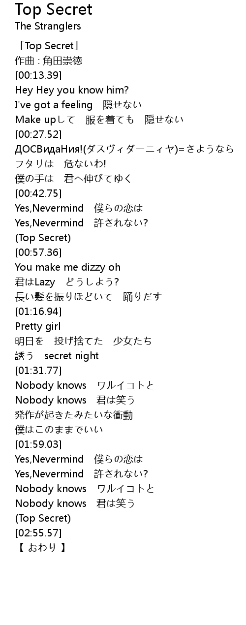| [00:29.15] | ДOCBидaHия!(ダスヴィダーニィヤ)=さようなら |