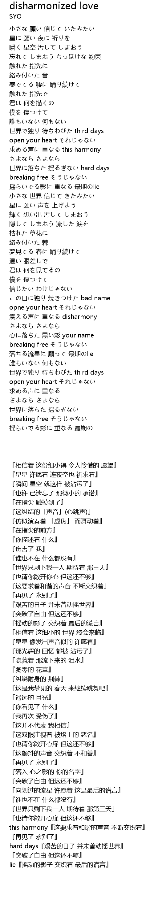 | [02:55.68] | 震える声に 重なる disharmony |