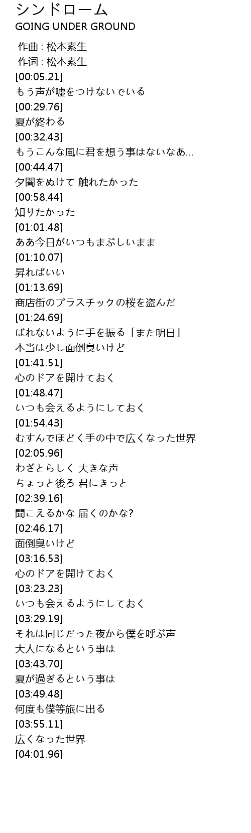 | [00:52.30] | 夕闇をぬけて 触れたかった |