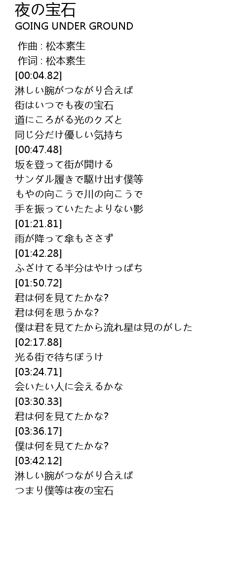 | [04:11.95] | つまり僕等は夜の宝石 |