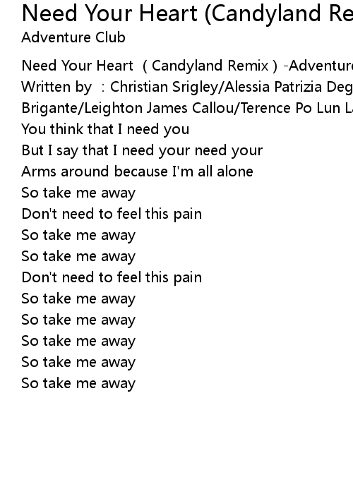 | [00:00.532] | Need Your Heart Candyland Remix Adventure Club Kai |