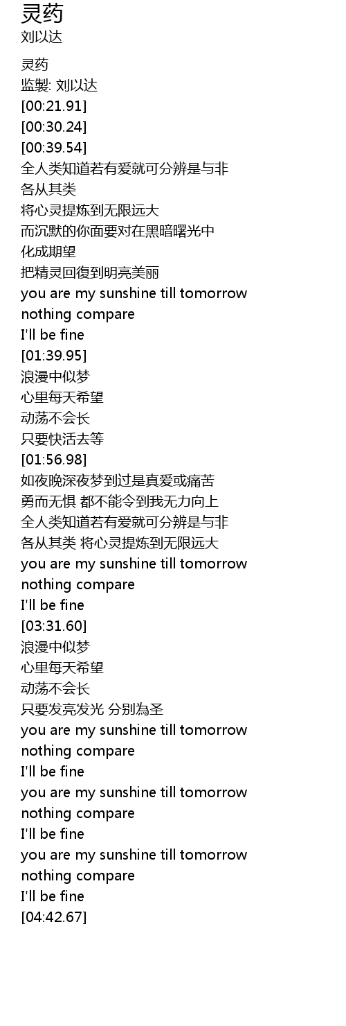 | [01:16.48] | ba jing ling hui fu dao ming liang mei li |