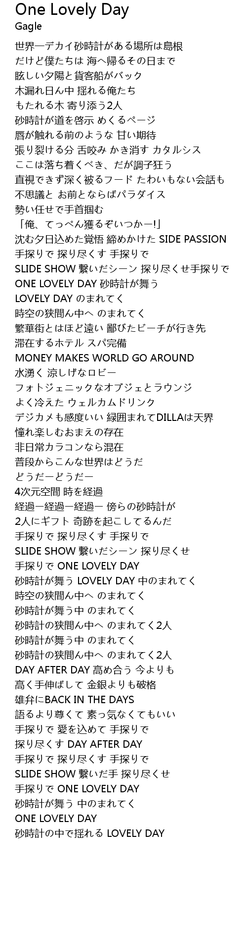 | ONE LOVELY DAY 砂時計が舞う | |