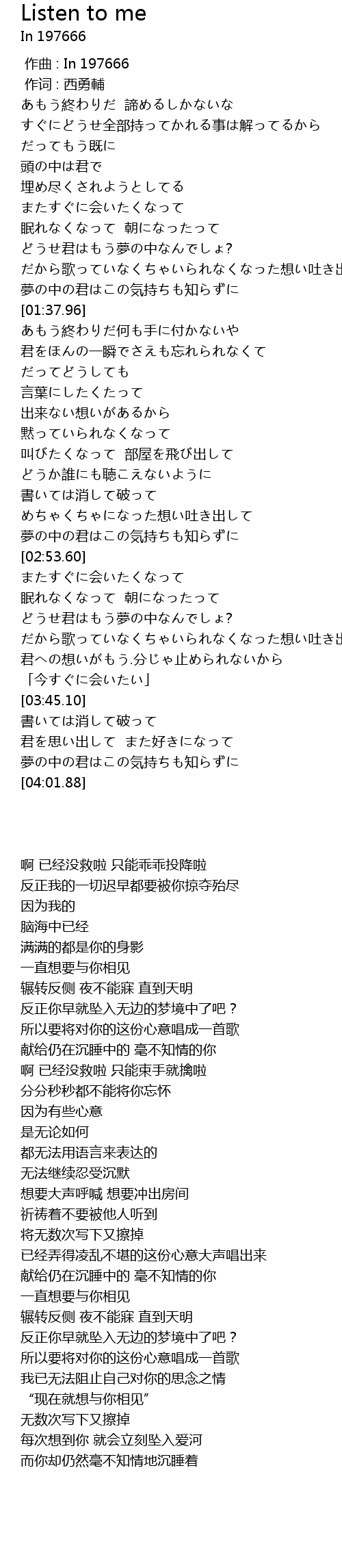 | [03:20.64] | どうせ君はもう夢の中なんでしょ? |