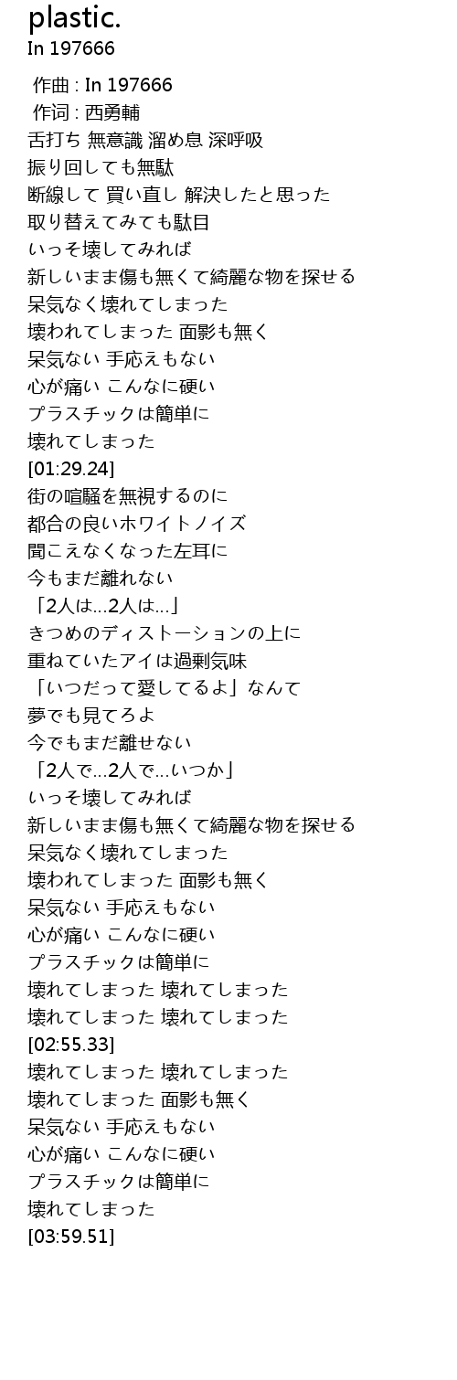 | [03:23.75] | 壊れてしまった 壊れてしまった |
