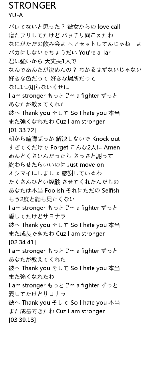 | [03:02.30] | I am stronger もっと I'm a fighter ずっと |