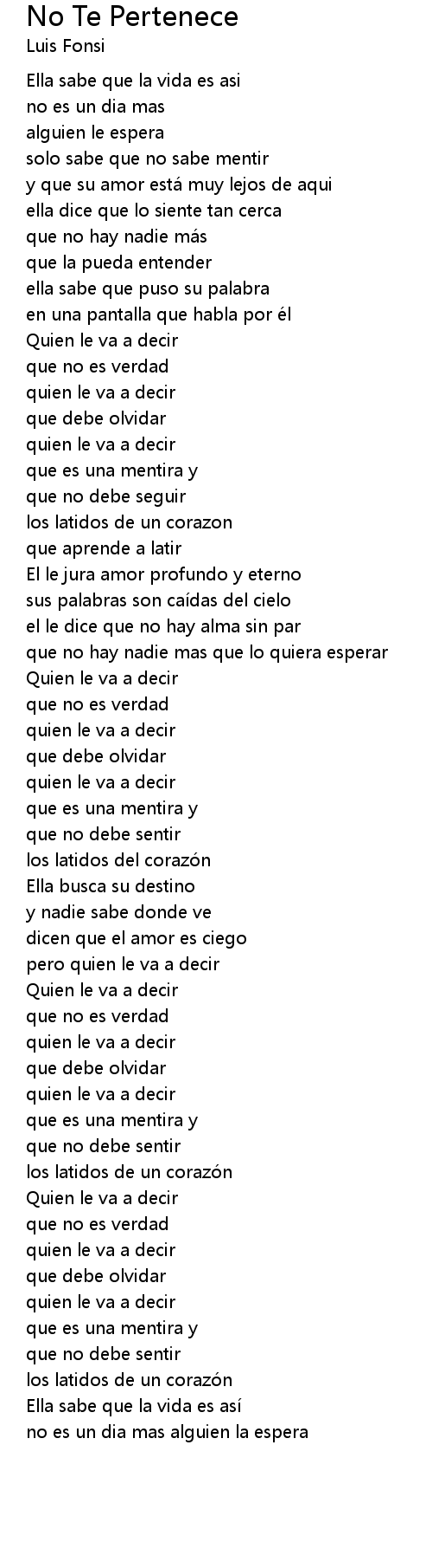 | Song | No Te Pertenece |