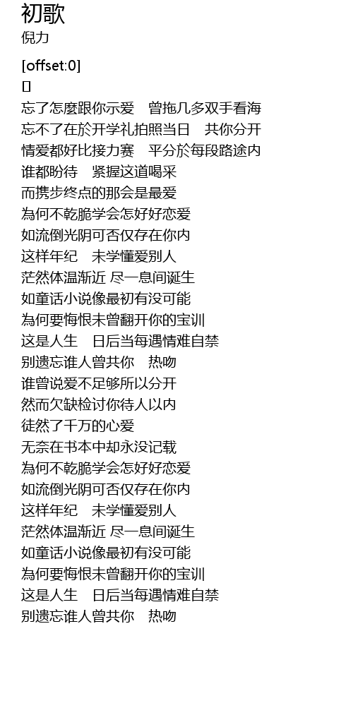 | [00:19.237] | 忘不了在於开学礼拍照当日 共你分开 |