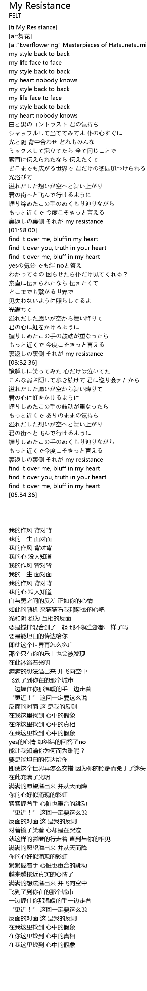 | [03:24.54] | 裏返しの裏侧 それが my resistance |