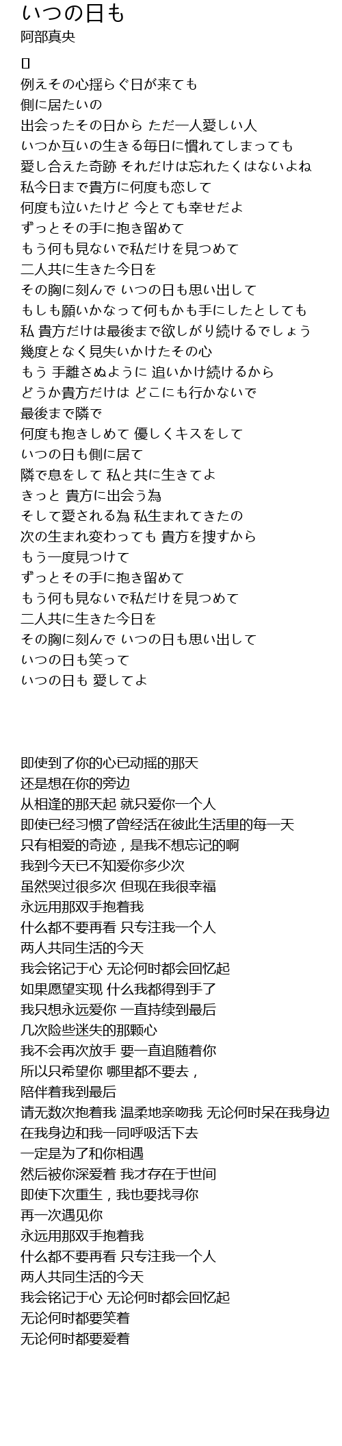 | [02:51.603] | 何度も抱きしめて 優しくキスをして いつの日も側に居て |