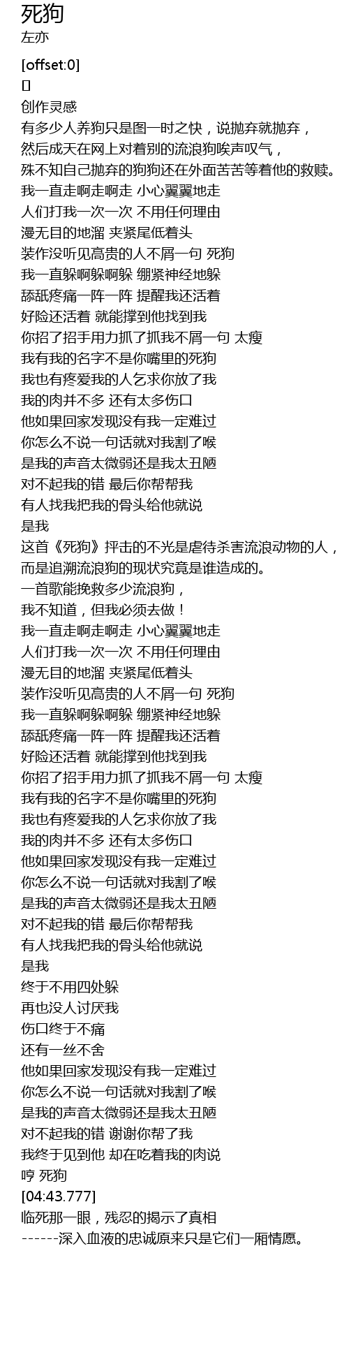 | [02:00.681] | 这首《死狗》抨击的不光是虐待杀害流浪动物的人, |