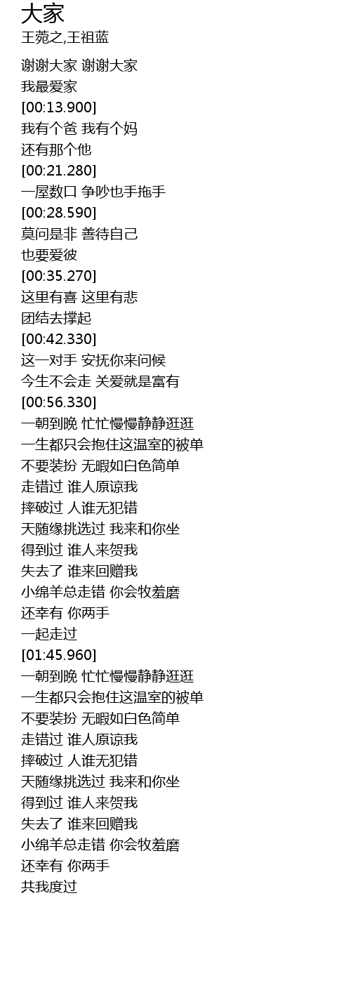 | [00:22.340] | 一屋数口 争吵也手拖手 |