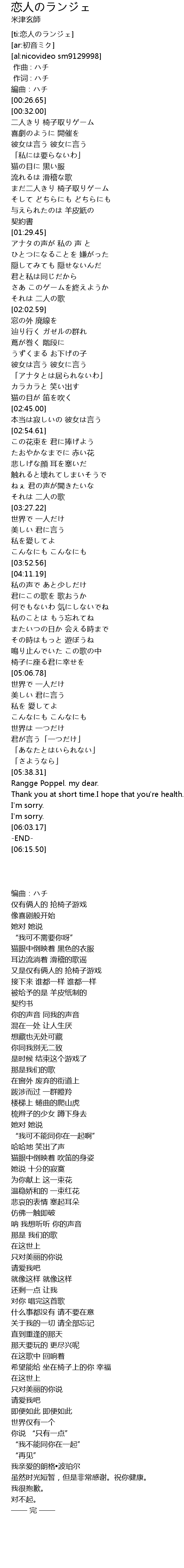 | [00:01.00] | 作词 : ハチ |
