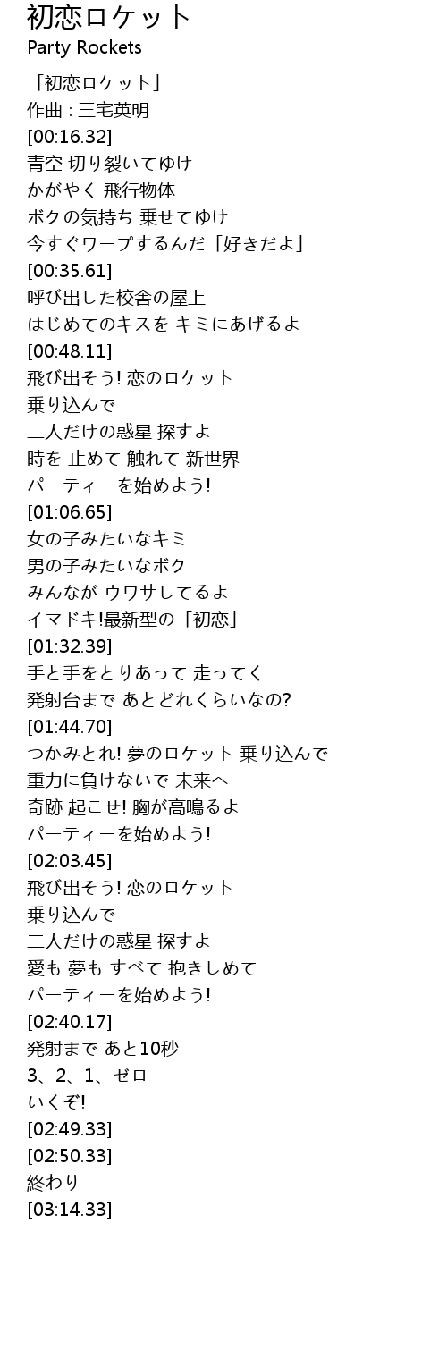 | [02:23.14] | 飛び出そう! 恋のロケット |