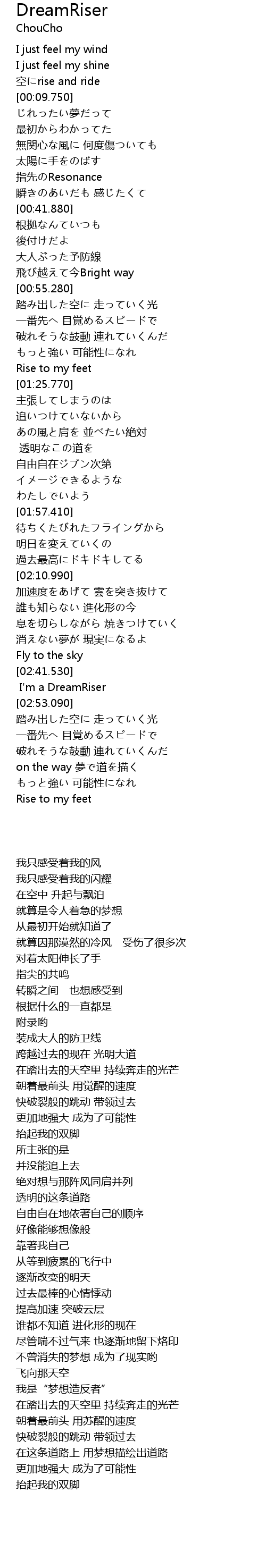 | [02:50.480] | I' m a DreamRiser |