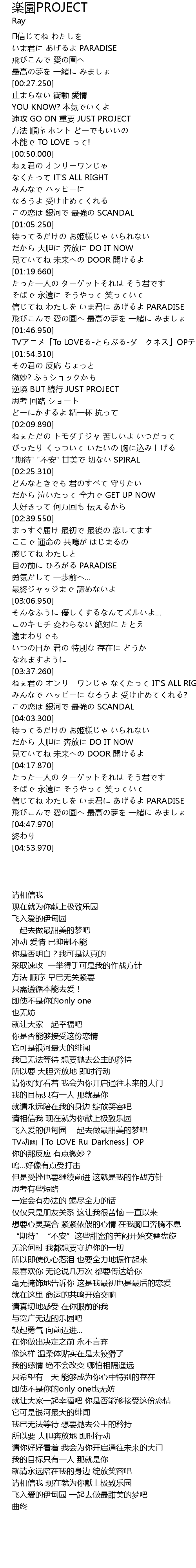 | [04:27.360] | 信じてね わたしを いま君に あげるよ PARADISE |