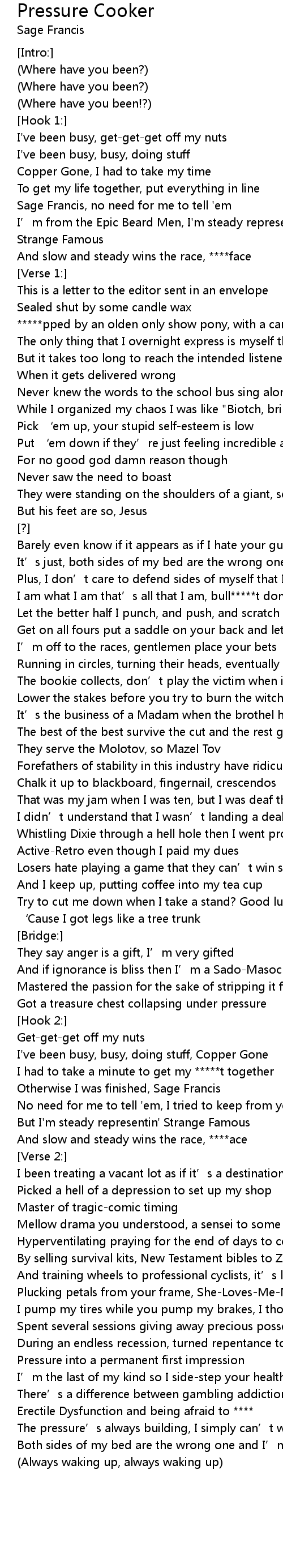 | Song | Pressure Cooker |