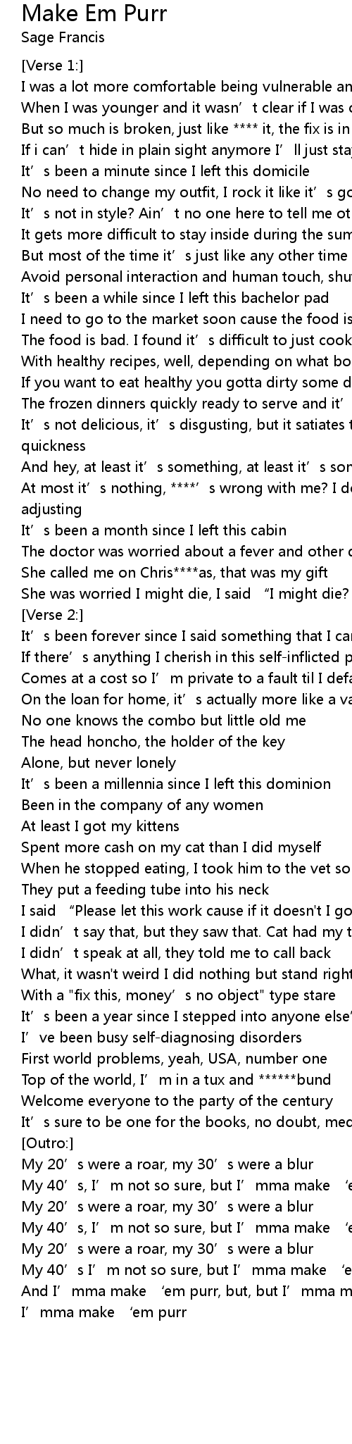 | And I' mma make ' em purr, but, but I' mma make ' em purr | |