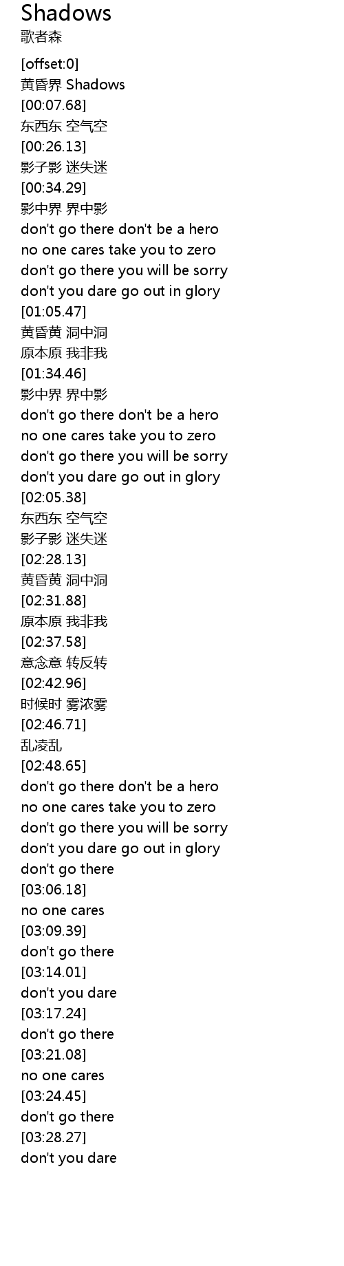 | [02:23.08] | 影子影 迷失迷 |