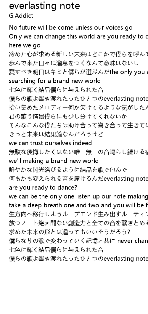 | 僕らの歌よ響き渡れたったひとつのeverlasting note |