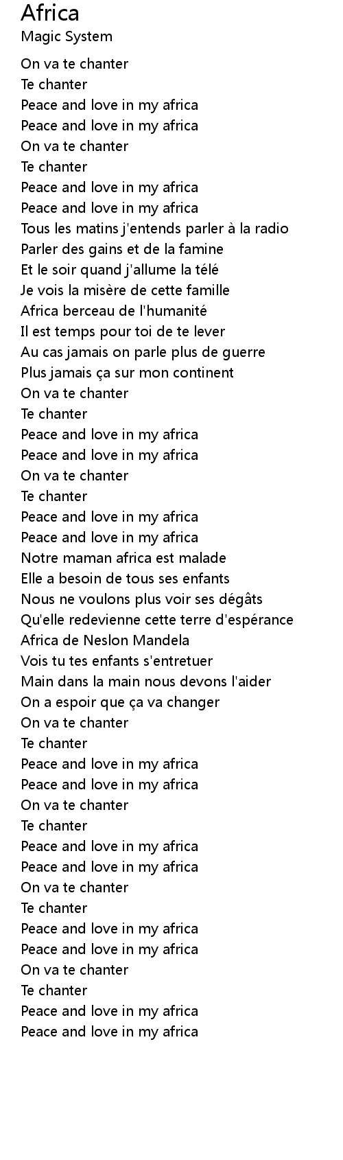 | Song | Africa |