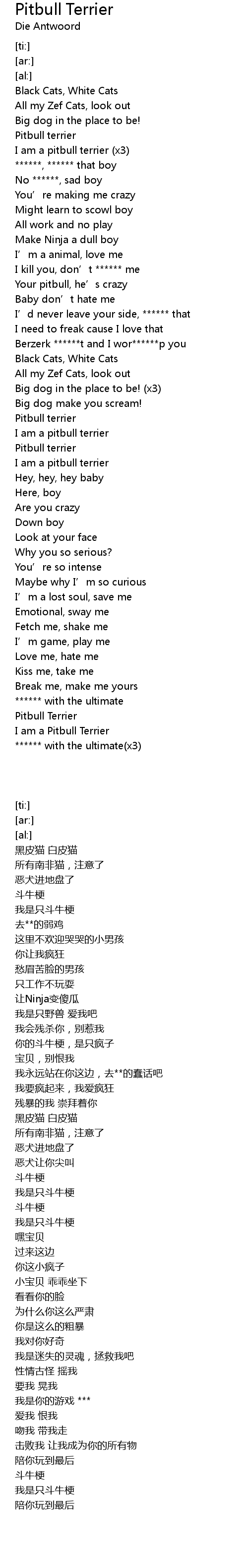 | [00:20.22] | I am a pitbull terrier (x3) |
