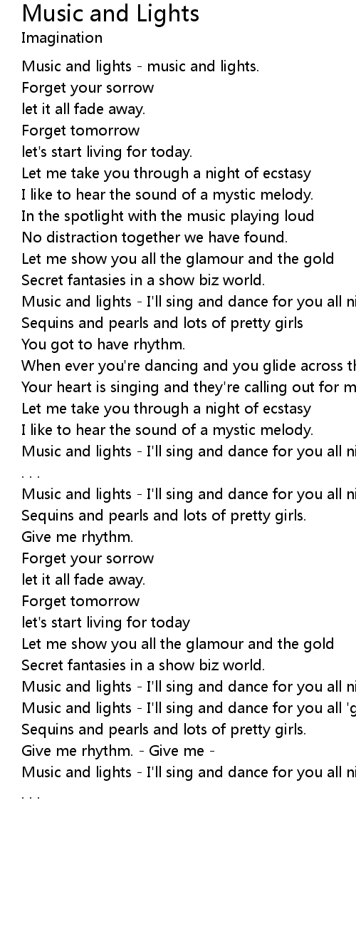 Music and lights - I'll sing and dance for you all night |
