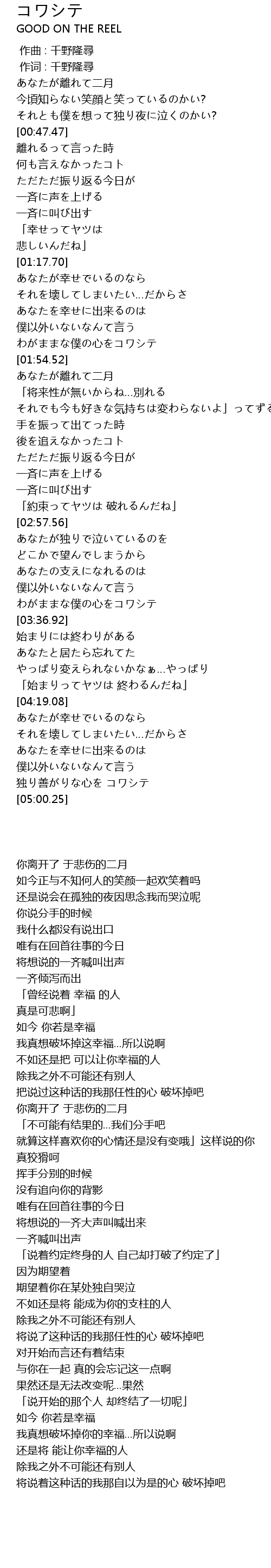 | [04:46.94] | 独り善がりな心を コワシテ |