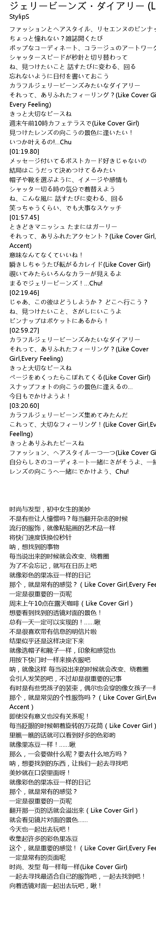 | [03:30.61] | ファッション、ヘアスタイルーつ一つ(Like Cover Girl) |