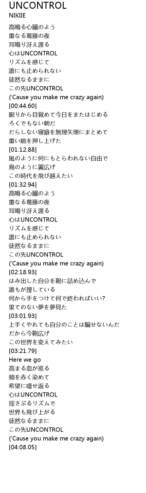 | [02:00.13] | この先UNCONTROL |