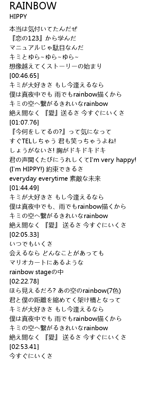 | [02:23.72] | ほら見えるだろ? あの空のrainbow(7色) |