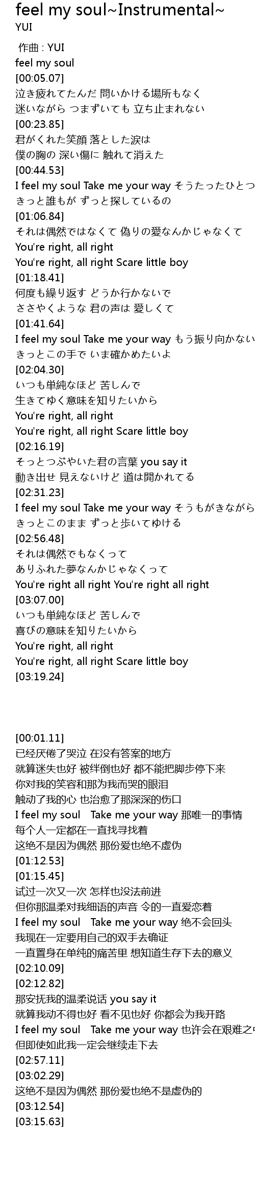 | [02:35.85] | I feel my soul Take me your way そうもがきながらも |