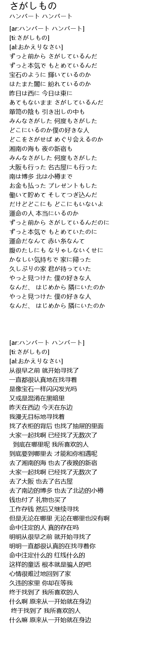 | [02:43.66] | ずっと前から さがしているんだのに |