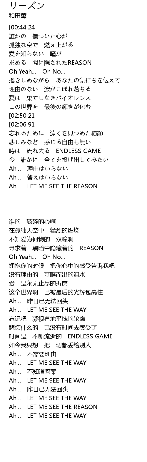 | [03:02.41] | Ah LET ME SEE THE REASON |