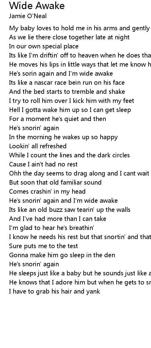 He's snorin' again and I'm wide awake |