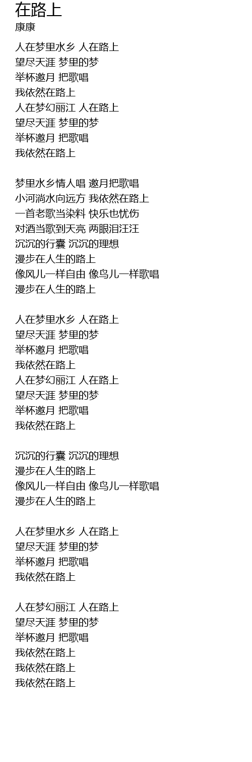 | xiǎo hé tǎng shuǐ xiàng yuǎn fāng wǒ yī rán zài lù shàng | |