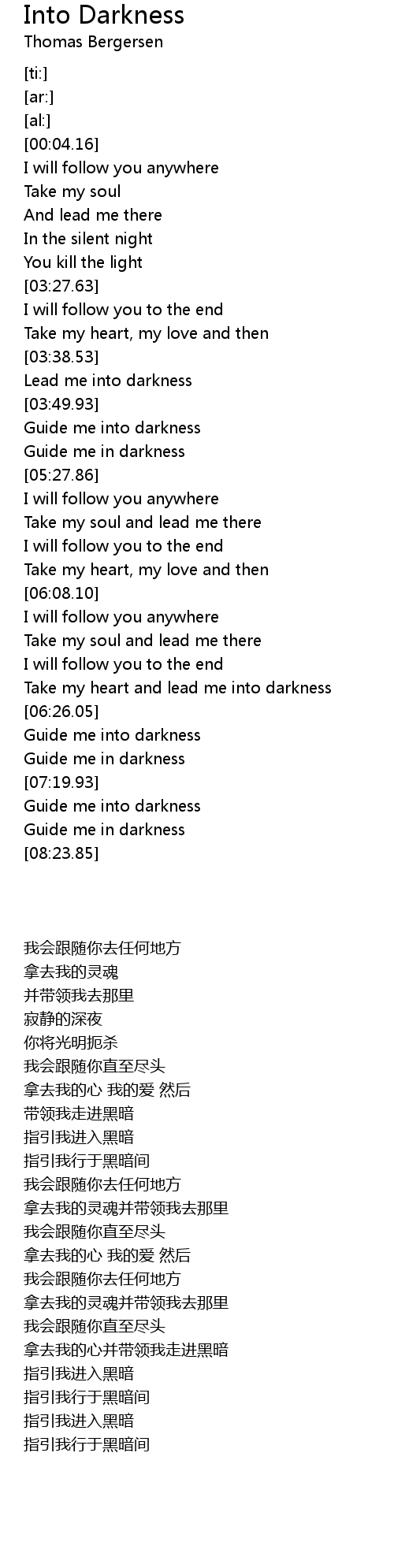 Take my heart and lead me into darkness |