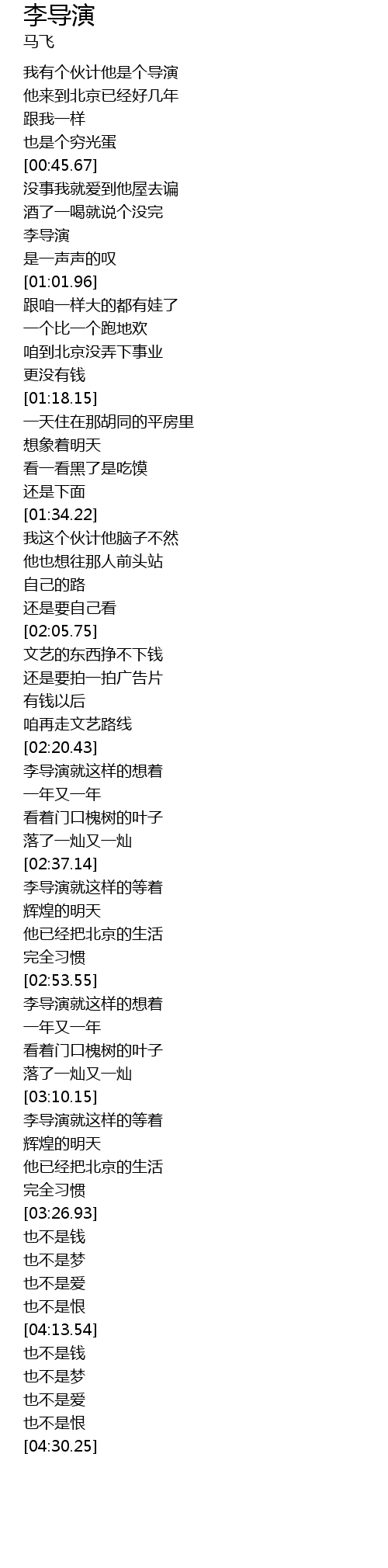 | [00:36.56] | tā lái dào běi jīng yǐ jīng hǎo jǐ nián |